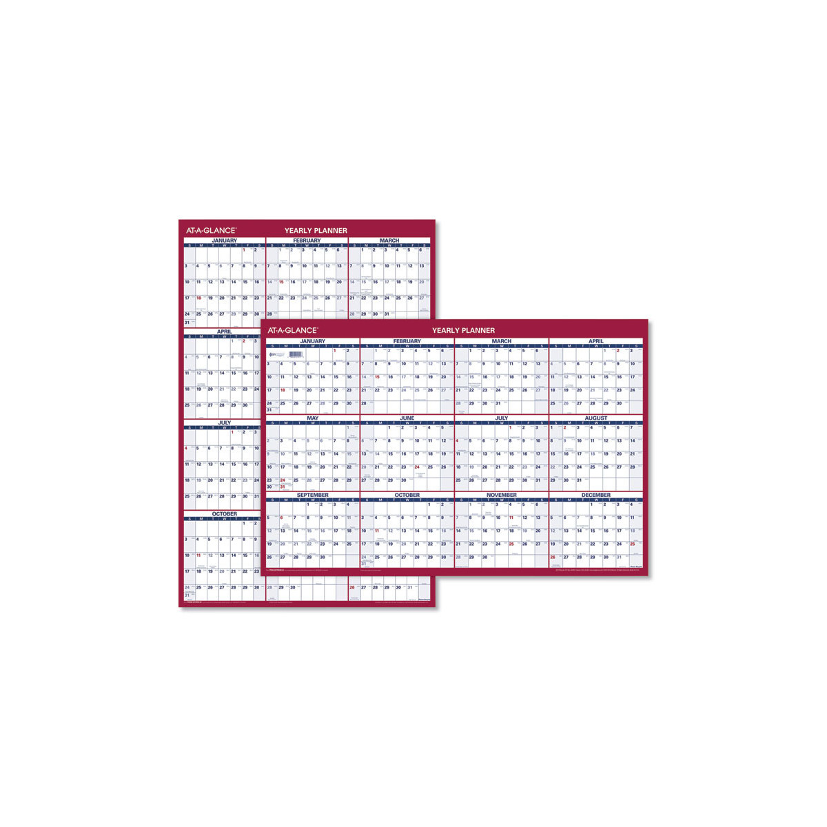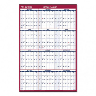 Get the planning versatility that busy professionals need with this reversible wall-calendar. Hang the calendar the way that best meets your needs or track important business events on one side and personal events on the other. Both sides of the calendar display a full 12-months, with one side laid out vertically in four rows of three months and the other side laid out horizontally in three rows of four months. Bold, larger than average print on a contrasting background makes both sides easy to read. And AT-A-GLANCE® is well aware that plans change, so this calendar's made to keep up with the most hectic scheduling issues. Simply note your important information with the included wet-erase marker and wipe the calendar clean with a damp cloth to fully take advantage of its write-on/wipe-off design.