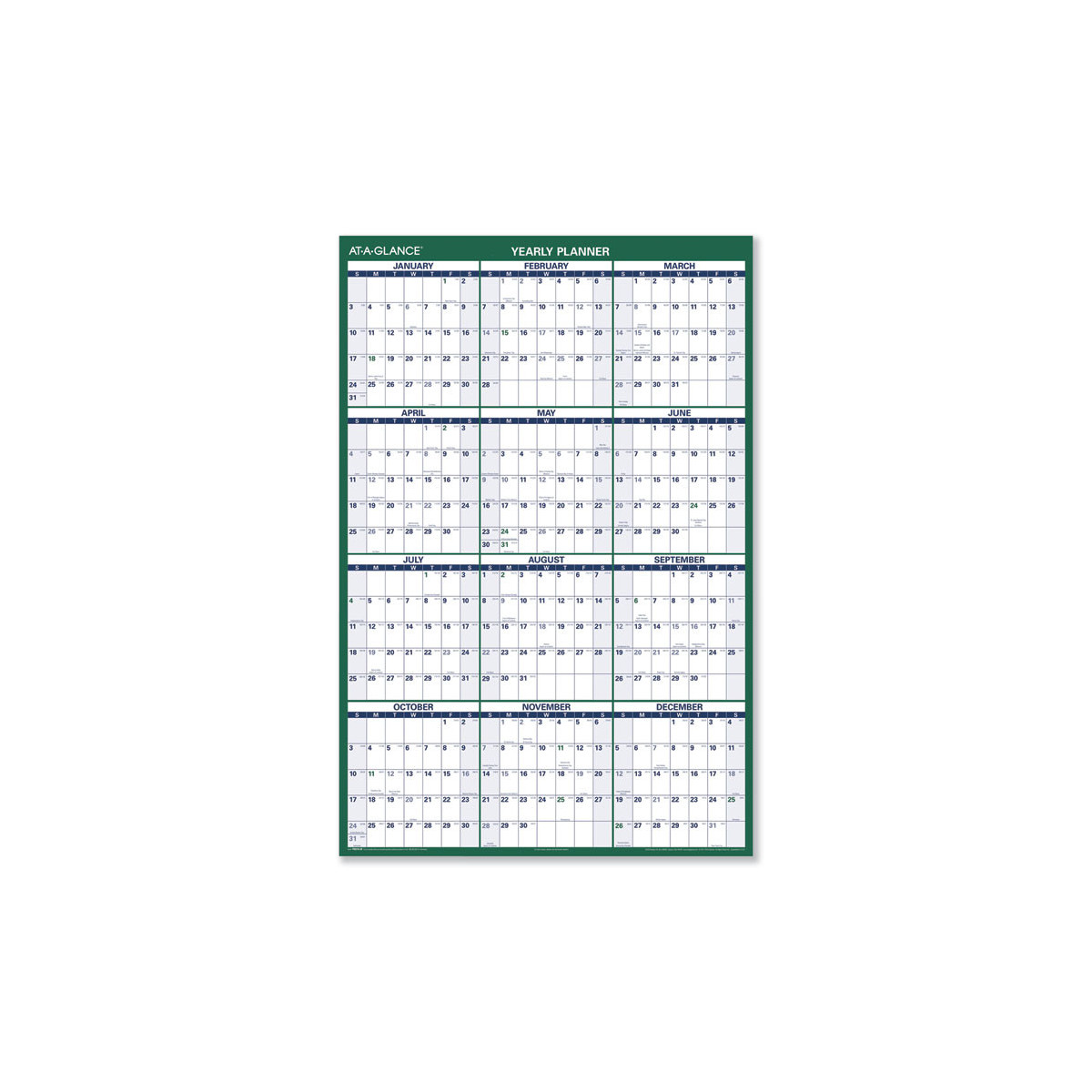 Reversible calendar offers two different layouts. Use both sides for comprehensive planning. One side covers 12 months from JanuaryDecember and the other side features a ruled column and open planning space. Erasable write-on/wipe-off surface lets you quickly revise plans. Simply wipe clean and start over. Use with the included wet-erase marker. Bright white background and bold, large print allows for easier viewing and reading. Perfect for shared usage and collaboration.