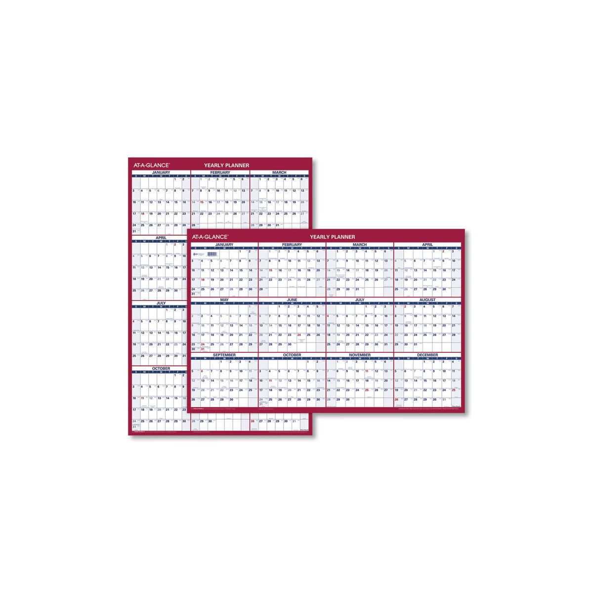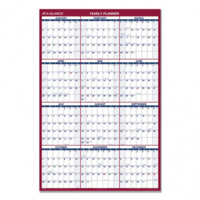 Get the planning versatility that busy professionals need with this reversible wall-calendar. Hang the calendar the way that best meets your needs or track important business events on one side and personal events on the other. Both sides of the calendar display a full 12-months, with one side laid out vertically in four rows of three months and the other side laid out horizontally in three rows of four months. Bold, larger than average print on a contrasting background makes both sides easy to read. And AT-A-GLANCE® is well aware that plans change, so this calendar's made to keep up with the most hectic scheduling issues. Simply note your important information with the included wet-erase marker and wipe the calendar clean with a damp cloth to fully take advantage of its write-on/wipe-off design.