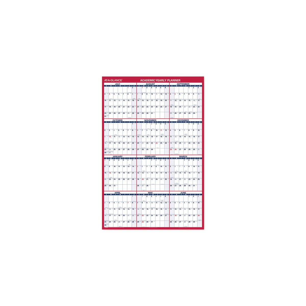 Schedule your way with a wall calendar that fits your space. The reversible calendar displays 12 months in a vertical yearly layout on one side and a horizontal layout on the other. Write-on/wipe-off surface makes for quick and easy update. The AT-A-GLANCE Academic Vertical/Horizontal Erasable Wall Calendar is the perfect tool for plans that are constantly changing. Calendar covers a 12 month date range from July-June with Julian dates for academic planning. Choose the orientation which best fits your space. Blocks measure 1.69" x 1.63" on one side and 1.44" x 2" on the other for plenty of space to write in your schedule and notes. Bold, large print and bright white background makes notes easier to see and read. Wet-erase marker included.