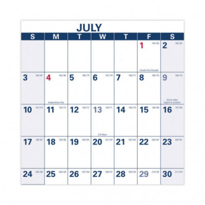 Calendar covers a 12-month date range from July-June with Julian dates for academic planning. Erasable write-on/wipe-off surface is great for collaboration and for making quick updates. Reversible calendar shows all 12 months in vertical layout on one side and horizontal on the other. Choose the orientation which best fits your space. Blocks measure 1.69" x 1.63" on one side and 1.44" x 2" on the other for plenty of space to write in your schedule and notes. Bold, large print and bright white background makes notes easier to see and read. Wet-erase marker included.