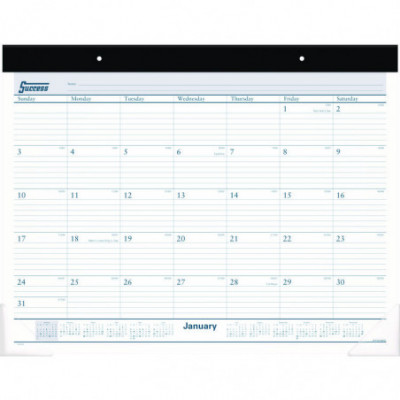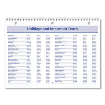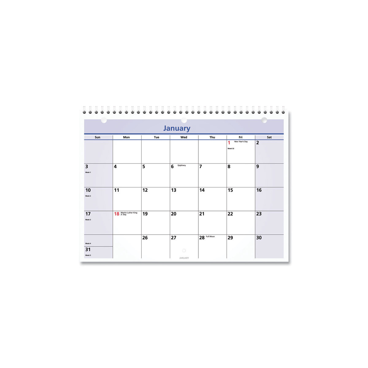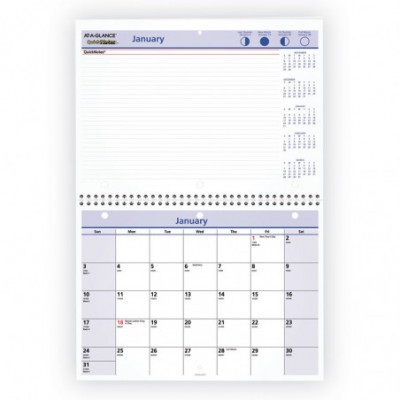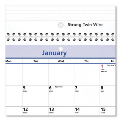 Yellow highlighted section for notes and to-do's. One month per two-page spread with unruled blocks; shaded weekends; QuickNotes® section on top page. Current, two past and two future months reference; federal holidays highlighted. Wirebound and three-hole punched for binder use or hanging. Printed on high-quality paper with superior ink bleed resistance.