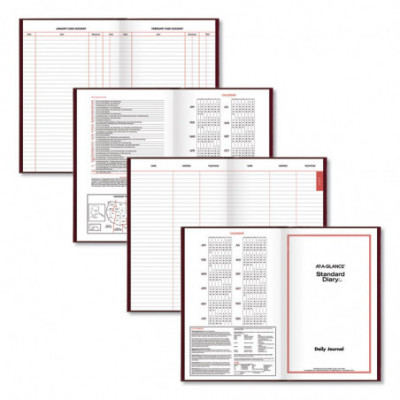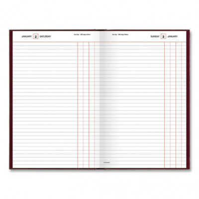 Keep your daily notes and records safe and secure in this hardcover archival book. One page per day journal-ruled format includes a ruled daily column with four boxes at the end for easy customization; date and month at the top. Telephone/address section and monthly expense summary. Printed in red and black inks on high-quality paper with superior ink bleed resistance