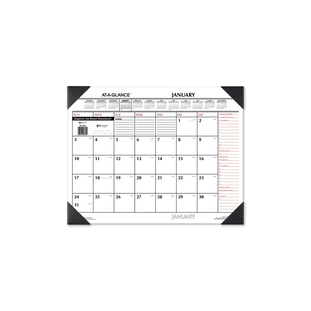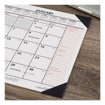 Use the next month planning space to plan ahead. Durable backboard provides a sturdy writing surface. One month per page with unruled blocks and lined notes space. Full-year calendar reference; federal holidays highlighted. Printed on high-quality paper with superior ink bleed resistance.