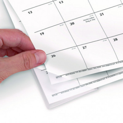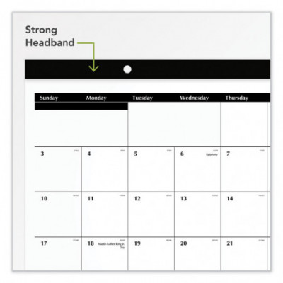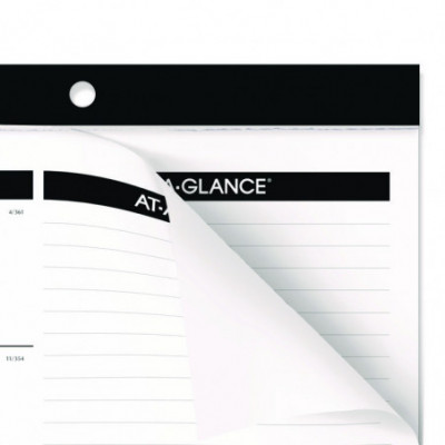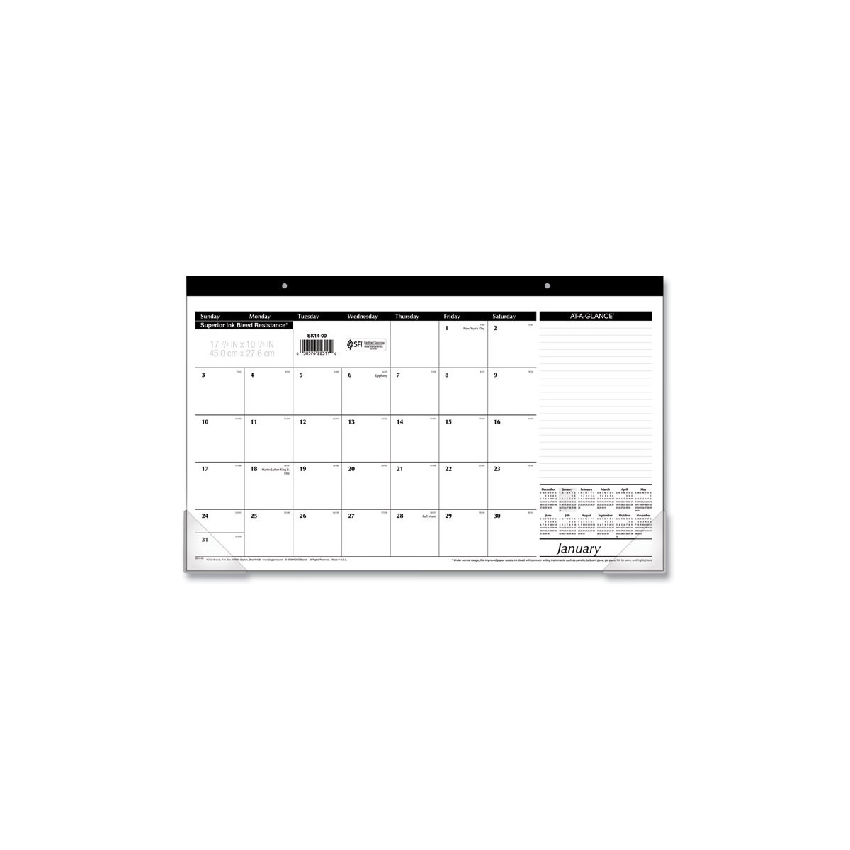 This compact desk pad is ideal for smaller workspaces and helps you plan ahead. Displays one month per page with unruled daily blocks for marking key dates, plus a notes column and full year calendar reference for date checking. Take advantage of versatile daily planning with unruled 1.5 x 1.5 inch blocks on this desk pad calendar. Each date is open for you to jot down any important notes, and there's a large ruled notes block on each page for detailed reminders. The compact desk pad has a 17 3/4" x 10 7/8" size. It has neat black and white coloring. Every monthly calendar page is perforated for neat removal and disposal at the end of each month. Looks great in any workspace. Printed on high-quality paper with superior ink bleed resistance.