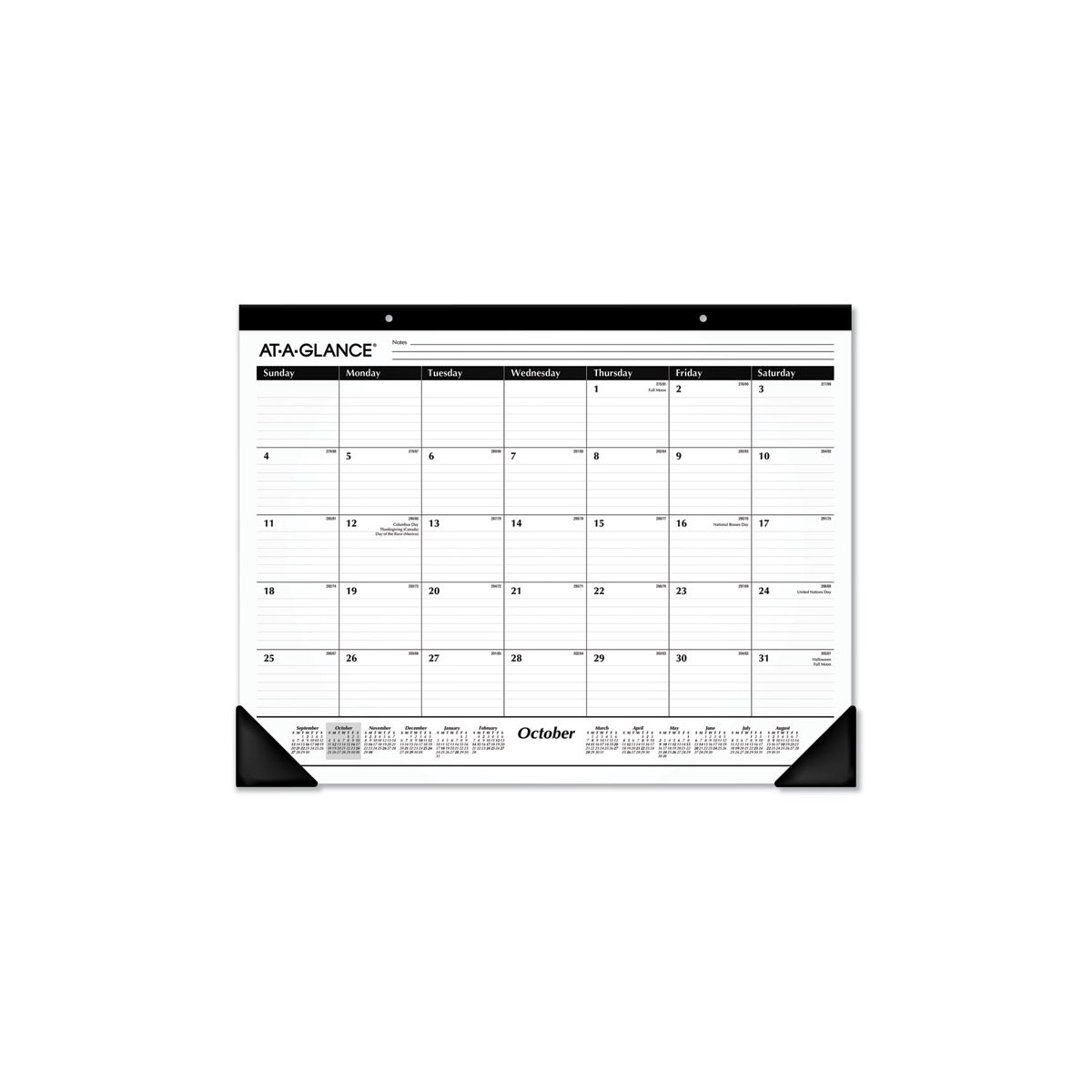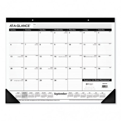 Academic Year Ruled Desk Pad, 21.75 x 17, White Sheets, Black Binding, Black Corners, 16-Month: Sept 2025 to Dec 2026