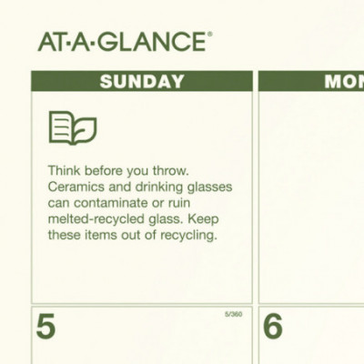Features tips for "green living" each month. One month per page with unruled blocks and lined notes space. Full-year calendar reference; durable backboard. Printed on high-quality, recycled paper containing post-consumer recycled material.