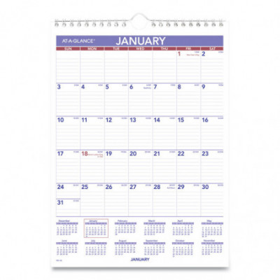Desk pad serves as a monthly calendar that you can keep neatly on your desktop. High-quality paper features superior ink bleed resistance. Calendar runs January to December with one month per page and large, ruled 3" x 2 1/4" blocks provide plenty of space to jot down notes and reminders of special events. Julian dates. For future planning and fast date reference a full year calendar is printed on the bottom of each page. The top binding is punched with eyelets so that the desk pad could also be used as a wall calendar. Two clear poly corners keep pages flat during hanging or desktop use. The durable backboard ensures you always have a sturdy writing surface.