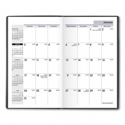One month per two-page spread; past, current and three future months reference. High-quality paper features superior ink bleed resistance.