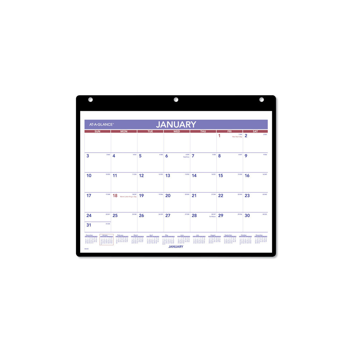 Stay up to date, month to month, all year long. This calendar is perfect for keeping the big picture in view. One-month-per-page layout features a block calendar with plenty of space for notes. Versatile design allows for wall-mounting or inserting the calendar into any standard, three-ring binder. High-quality paper provides superior ink-bleed resistance.