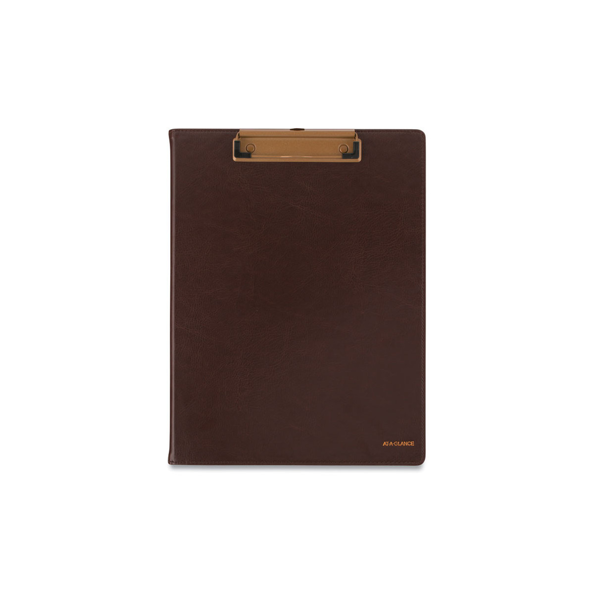 The AT-A-GLANCE® Signature Collection™ Monthly Clipfolio has distressed leather-like covers with stitched edges for a polished look that's perfect for modern professionals. A clipboard on the clipfolio's front cover is useful for securing loose papers and notes while on the go. The included monthly planner's 13 month date range runs from Jan. Jan. to cover the full year and beyond. Planner's one month per two-page spreads feature unruled daily blocks for open scheduling. Monthly spreads in planner also feature a ruled notes column for extra writing space and past/future month reference calendars to check dates as you plan. Each month is tabbed for easy navigation. Planner's special pages include a holiday listing, 3-year reference calendars, an event calendar, contacts pages and notes pages. Clipfolio features an interior pocket to hold loose papers and a vertical slot to hold the removable planner.