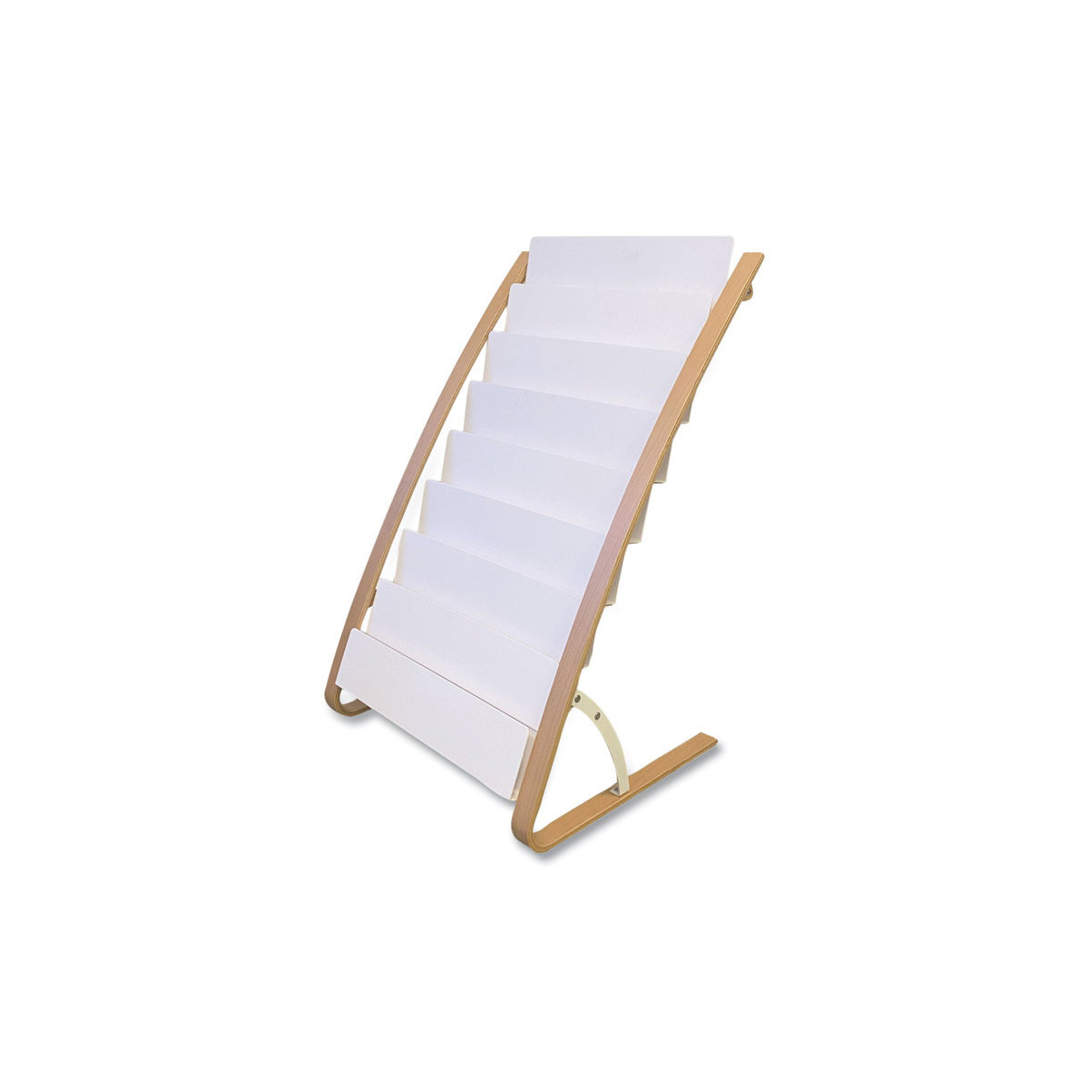 Who says your literature rack has to be boring? The combination of metal and plastic offers a unique and elegant design, with clean and updated lines. Its compartments provide immediate identification of documents. Large base with non-slip pads offers extreme stability.
