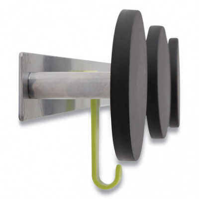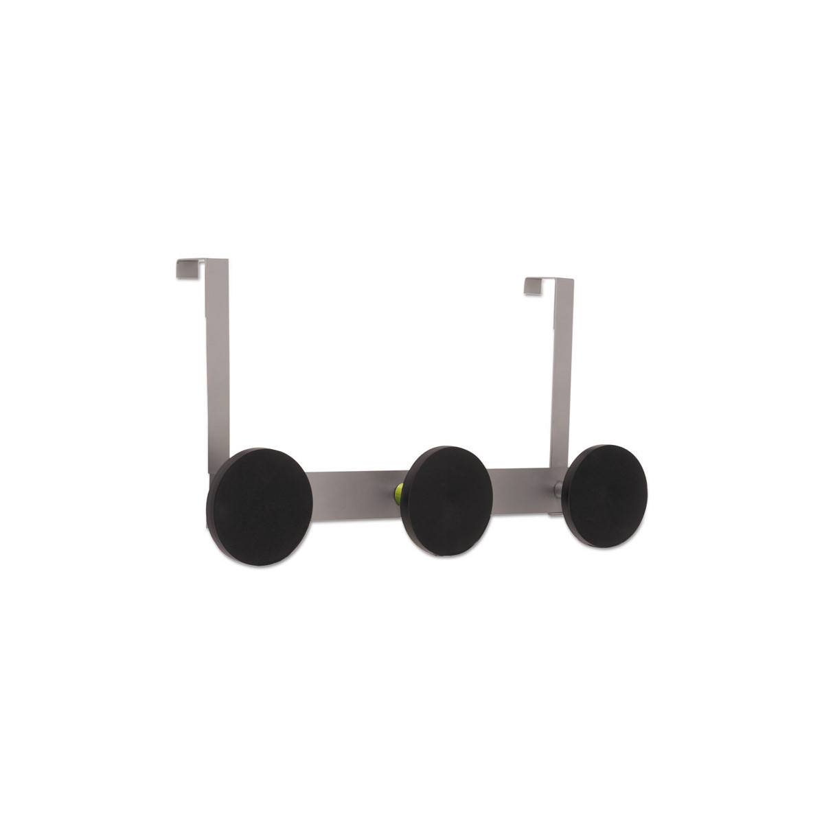 This wall coat peg features three rounded black plastic pegs, one hook for accessories, one metallic holder, and two hooks to fix over the door. Very easy to affix without any tools thanks to its hook especially designed for doors (1.5 inches). Can also be used on cubicle partition walls of 1.5 inches. Very sturdy coat pegs that hold up to 20 pounds per hook. Stylish design that blends in with any office environment. Kind to clothes thanks to the large rounded tips on the ABS plastic coat pegs. Silver powder coated steel and ABS plastic.