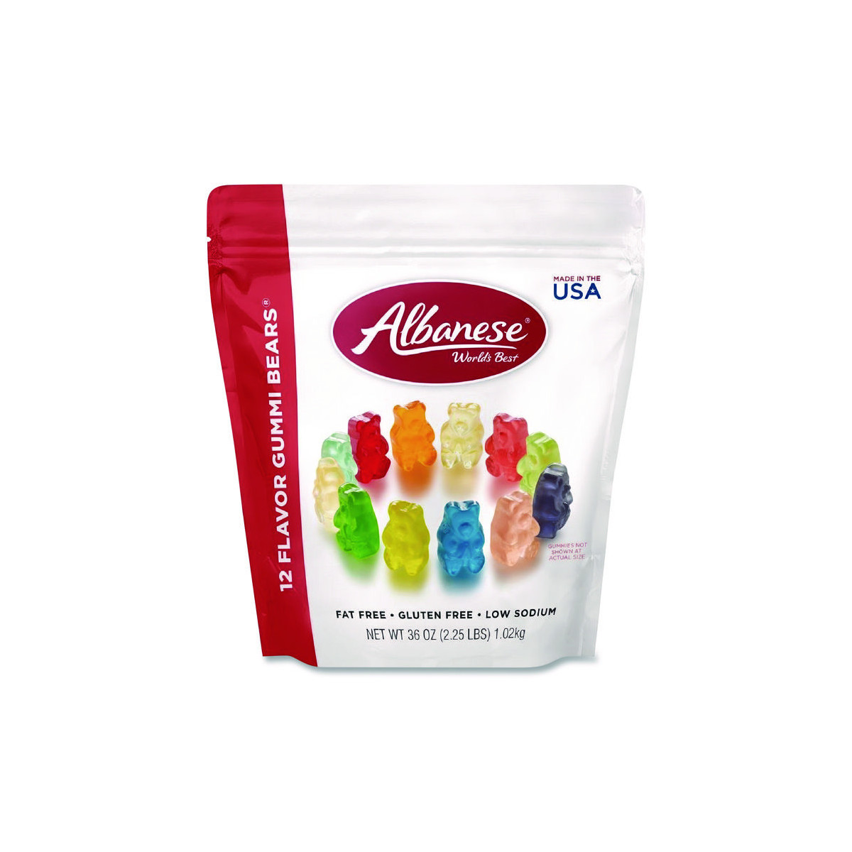 Grab a handful of this colorful mix of gourmet Gummi Bears and bite into the soft, chewy texture of these assorted flavored gummies. With 12 different flavors like Orange, Pineapple, Granny Smith Apple, Watermelon, Lemon, Cherry, Mango, Lime, Strawberry, Blue Raspberry, Grapefruit and Grape, every bag has more than enough flavors to excite everyone. Fill an office candy jar or bring some sweetness to your candy buffet with these gourmet Gummi Bears.
