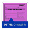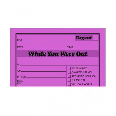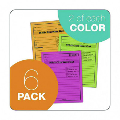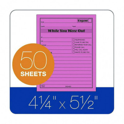 Stock up on Adams® eye-catching memo pads and never miss an important message again. Pads feature a bold While You Were Out header to capture your attention and a convenient pre-printed format for the details. All the essential information points are present and accounted for: Urgency Level, Recipient, Date, Time, Contact-Person Details and Means of Contact as well as plenty of ruled space for the message itself. Each top-bound sheet is printed on 16-lb bond paper stock.