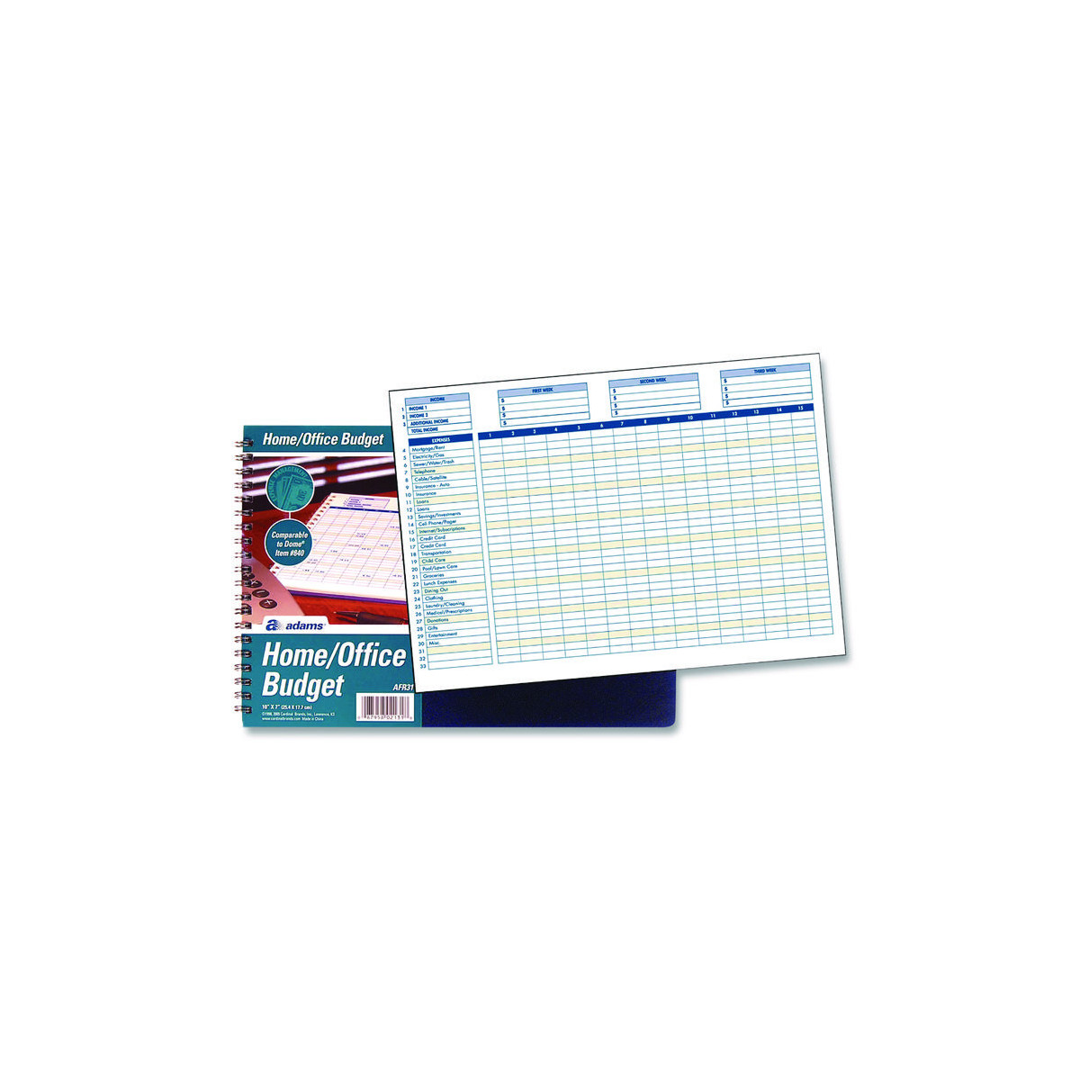 Keep track of your income and expenses. Featuring easy-to-read, multi-colored formatting to help reduce eye strain, Adams® Home/Office Weekly/Monthly Budget Book helps you track your investments as well as tax, insurance, healthcare, building improvement, mortgage/rent, grocery and gas expenses. A wide, landscape orientation and two-page layout provide plenty of space to account for everything. Bank reconciliation worksheets in back help you verify your account balances. Twin-wire binding allows the book to lie flat when open, so the rows neatly align across each two-page spread. Moisture-resistant, heavyweight poly cover protects the interior pages from accidents.