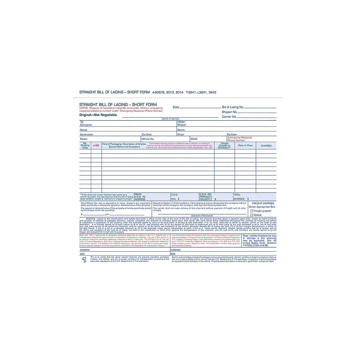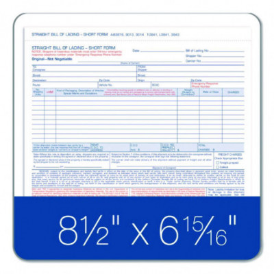 Adaptable to most types of shipments to any location in the United States, these simplified, short forms provide space to itemize several articles. Dedicated columns are provided for shipping units, hazardous materials indicators, article descriptions, shipping weights, rate/class codes and charges. Carbonless, multi-part format.