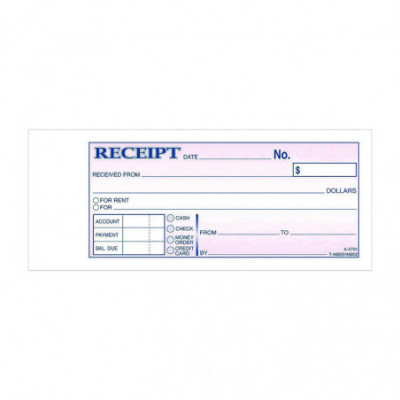 Use for rent or any other type of payment. 2-part (white, canary paper sequence). 50 sets per book. Consecutively numbered within each book. 2-3/4" x 7-3/16". SFI Certified Sourcing—Uses fiber from responsible and legal sources.