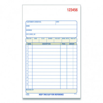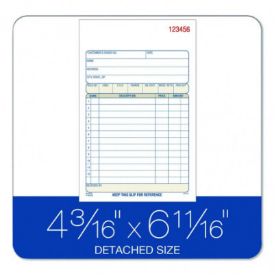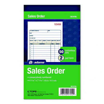 Perfect for keeping hard copy records of your sales, the Adams® Multipart Sales Order Pad features preprinted layout prompts for all the important details. With entry areas for point of sale, customer, order, terms information and more, anything one might wish to capture can easily be accommodated. Open area at top provides space for your company's logo, and the order form's carbonless, multipart format lets you provide a receipt to your customer while keeping clean, administrative copies. The pad's wraparound cover also allows you to place the front cover between sets as you fill out a form, minimizing the potential for write-through.