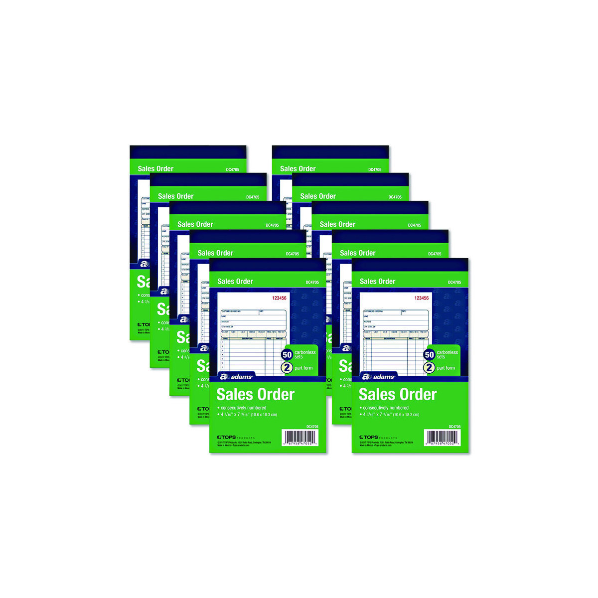 Multipart Sales Order Pad, 12 Lines, Two-Part Carbonless, 4.19 x 6.69, 50 Forms/Pad, 10 Pads/Box