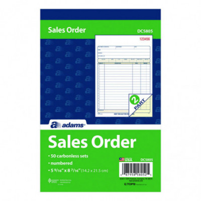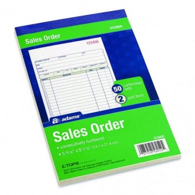 Perfect for keeping hard copy records of your sales, the Adams® Multipart Sales Order Pad features preprinted layout prompts for all the important details. With entry areas for point of sale, customer, order, terms information and more, anything one might wish to capture can easily be accommodated. Open area at top provides space for your company's logo, and the order form's carbonless, multipart format lets you provide a receipt to your customer while keeping clean, administrative copies. The pad's wraparound cover also allows you to place the front cover between sets as you fill out a form, minimizing the potential for write-through.