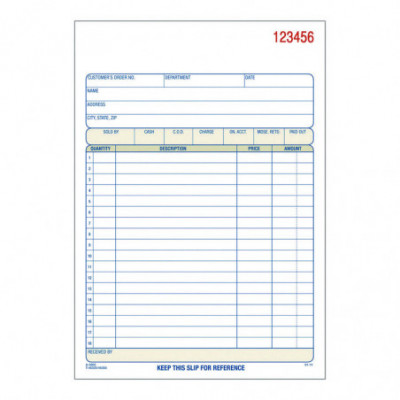 Perfect for keeping hard copy records of your sales, each order form features a preprinted layout with prompts for all the important details. Open area at top provides space for your company's logo. Carbonless, multipart format.