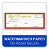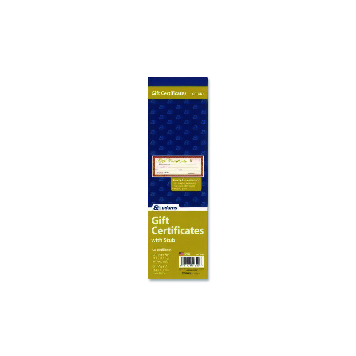 1-part gift certificate book with stub, has security watermarked paper. This gift certificate book with consecutive numbering, offers 25 numbered certificates.
