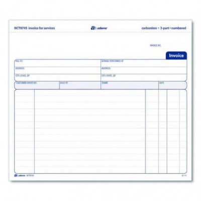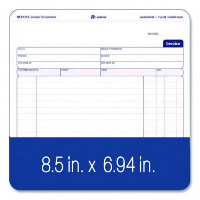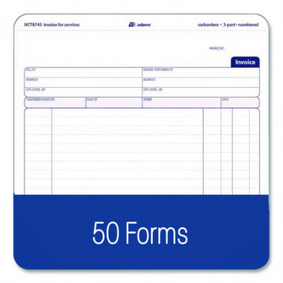 Designed specifically for service-based businesses, Adams® Multipart Service Invoices deliver a versatile format that provides ample space for customization and detailed descriptions of the services rendered. Pre-printed areas accommodate all the important administrative aspects. Carbonless, multipart design allows you provide a copy to your client while keeping clean copies for your records, and each form set features open space at top for your business's logo or name stamp. The pad's wraparound cover also allows you to place the front cover between sets as you fill out a form, minimizing the potential for write-through.