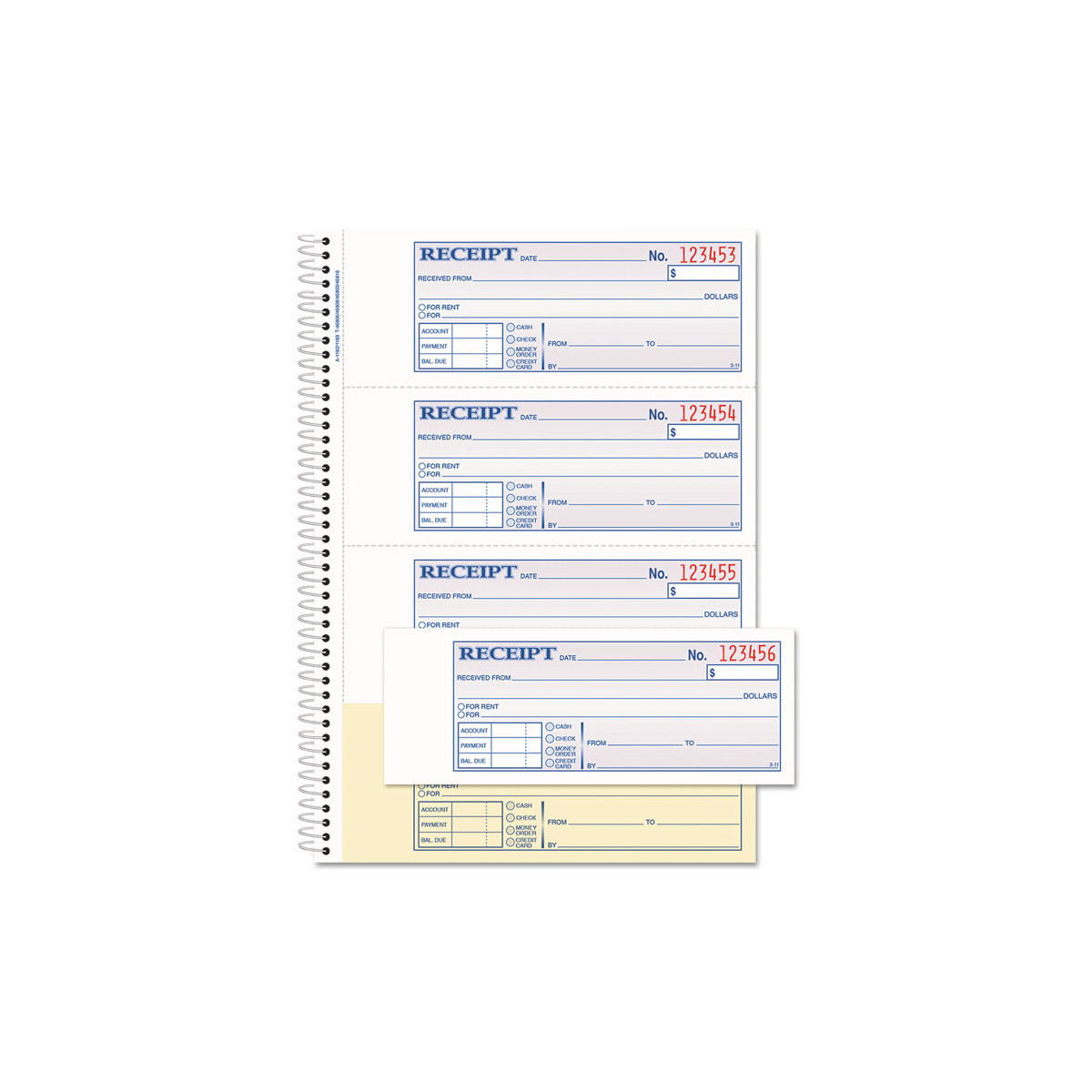 Use for rent or any other type of payment. 2-part (white, canary paper sequence). 50 sets per book. Consecutively numbered within each book. 2-3/4" x 7-3/16". SFI Certified Sourcing—Uses fiber from responsible and legal sources.