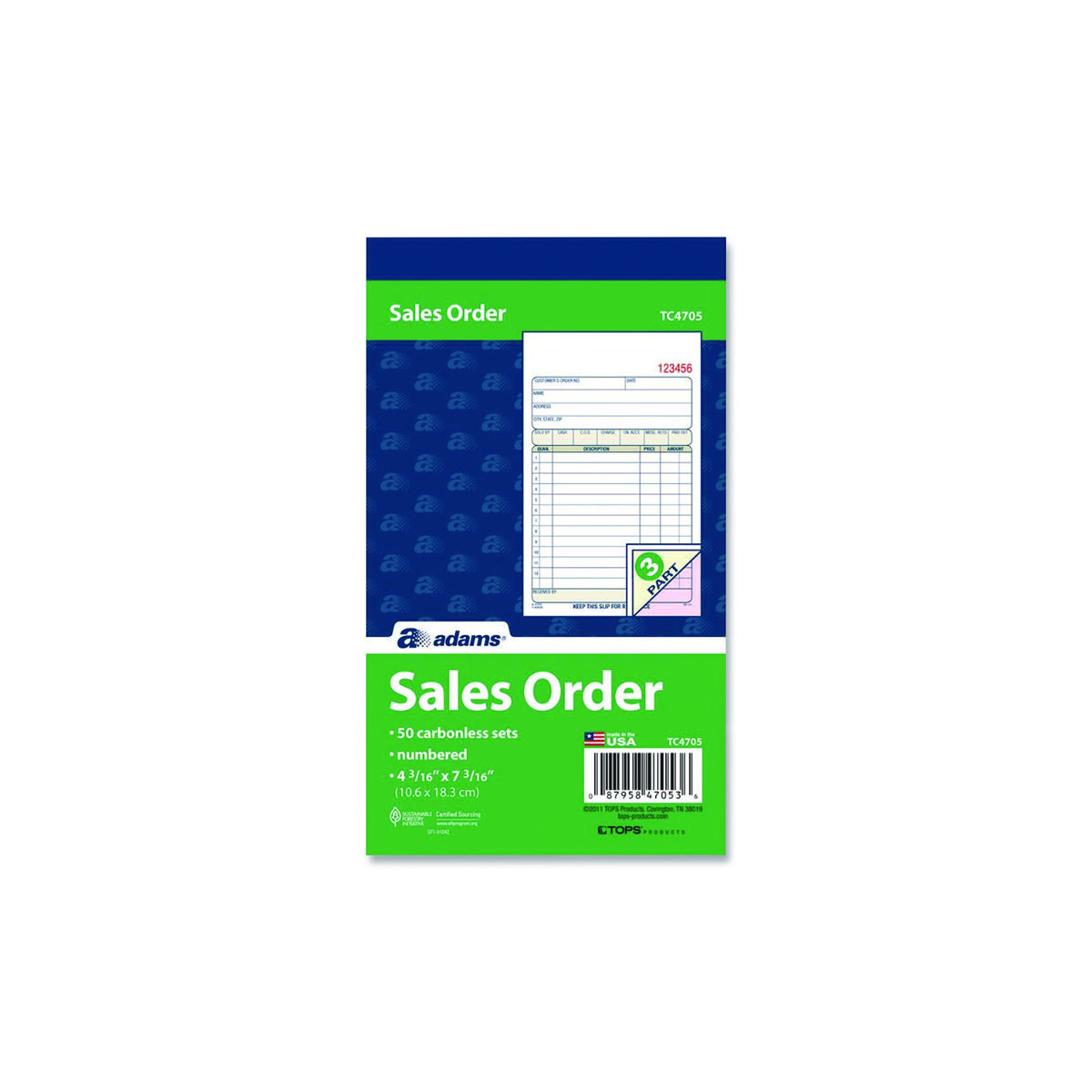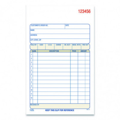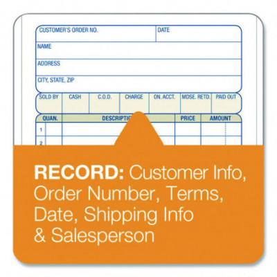 Perfect for keeping hard copy records of your sales, the Adams® Multipart Sales Order Pad features preprinted layout prompts for all the important details. With entry areas for point of sale, customer, order, terms information and more, anything one might wish to capture can easily be accommodated. Open area at top provides space for your company's logo, and the order form's carbonless, multipart format lets you provide a receipt to your customer while keeping clean, administrative copies. The pad's wraparound cover also allows you to place the front cover between sets as you fill out a form, minimizing the potential for write-through.