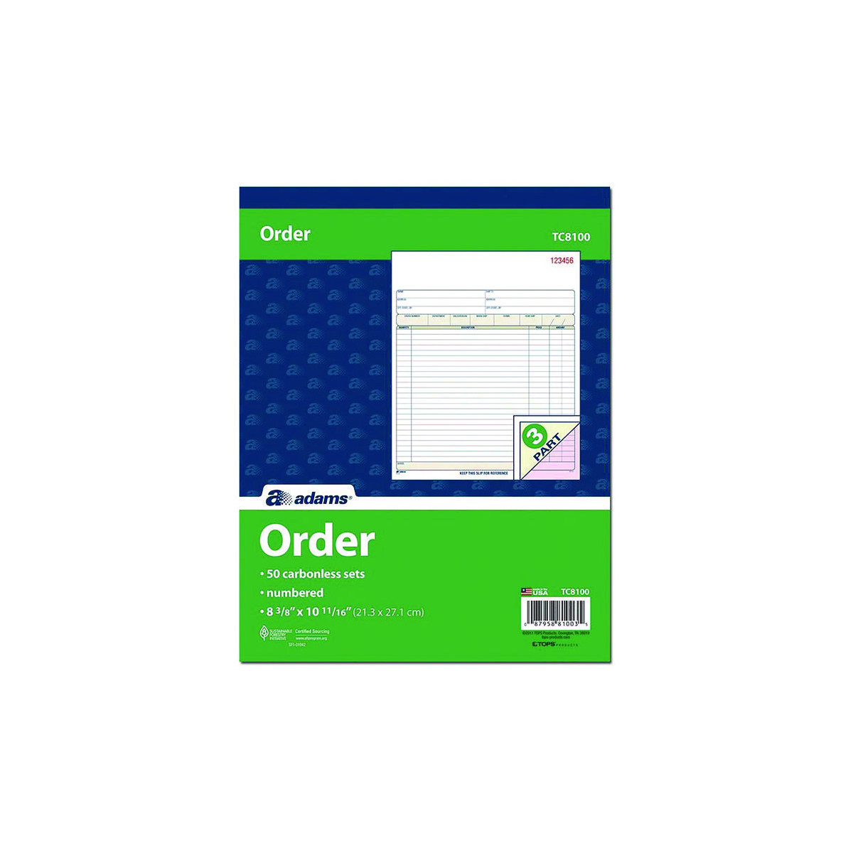 Perfect for keeping hard copy records of your sales, the Adams® Multipart Sales Order Pad features preprinted layout prompts for all the important details. With entry areas for point of sale, customer, order, terms information and more, anything one might wish to capture can easily be accommodated. Open area at top provides space for your company's logo, and the order form's carbonless, multipart format lets you provide a receipt to your customer while keeping clean, administrative copies. The pad's wraparound cover also allows you to place the front cover between sets as you fill out a form, minimizing the potential for write-through.
