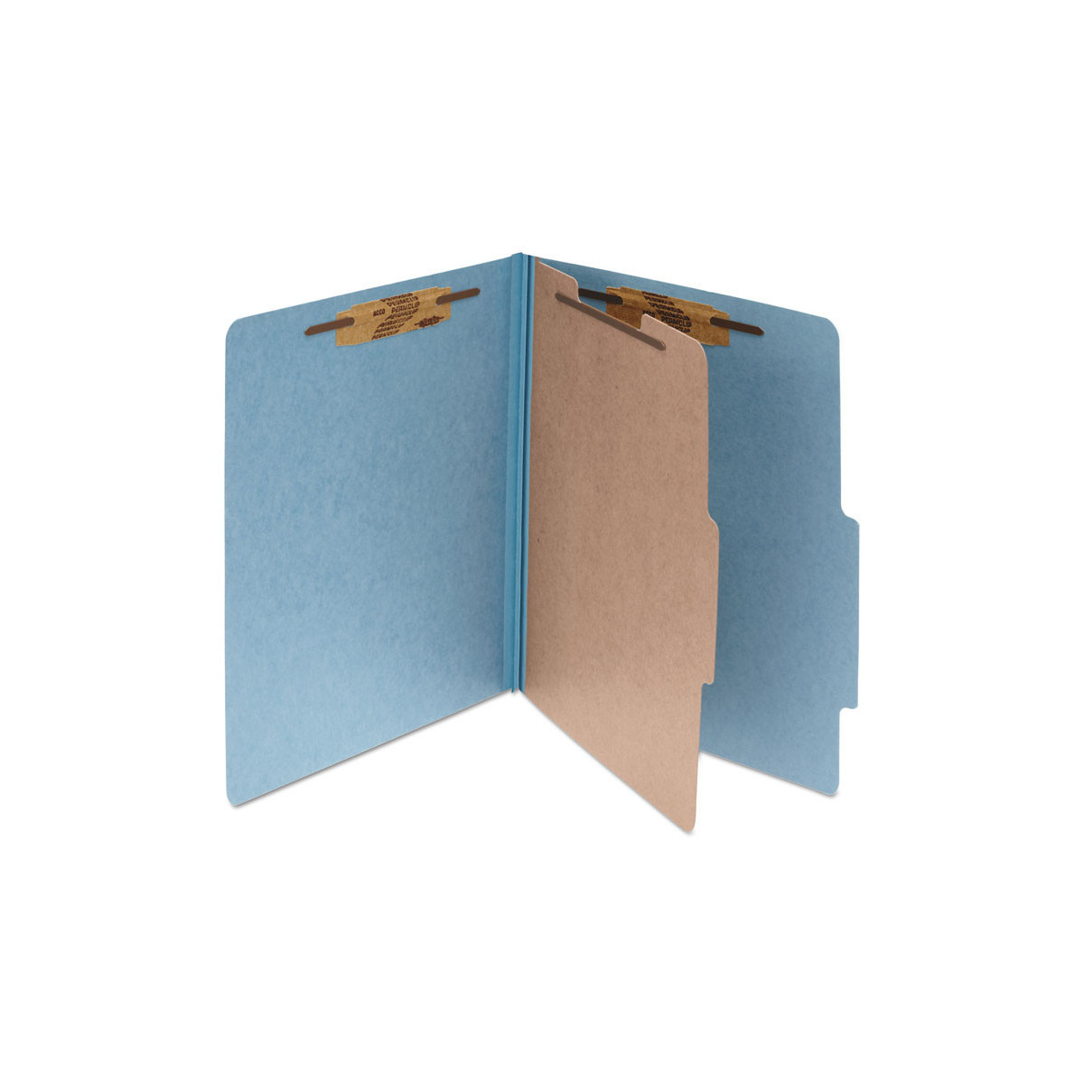 Choose a classification folder with four, six or eight parts to meet your needs. Durable, 25-pt. pressboard covers with fasteners provide snag-free document filing. Color-matched, reinforced Tyvek® expandable file gusset ensures long-term use. Tabs for titling included on covers and dividers.