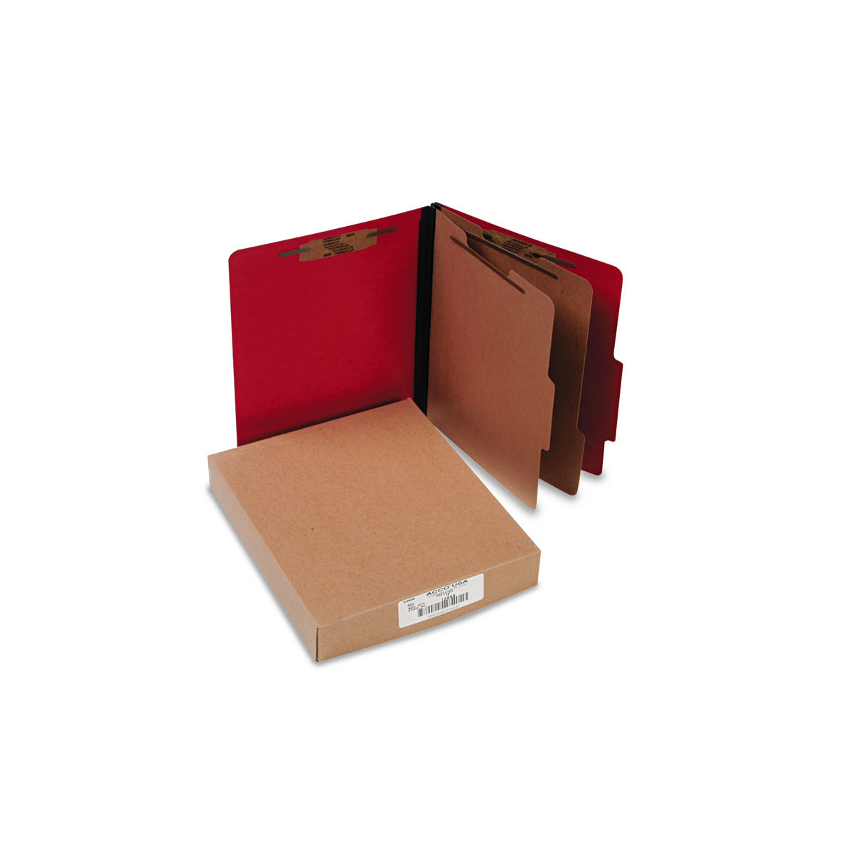 ColorLife PRESSTEX Classification Folders, 2/5-Cut Tab, Expands 3", 2 Dividers, 6 Fasteners, Letter Size, Exec Red, 10/Box