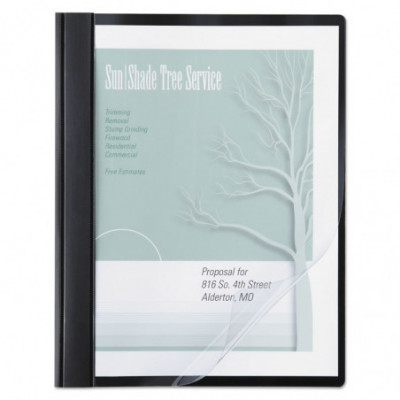 Show off your title page with a transparent front cover. Report cover with colored-vinyl back is durable and water-resistant. 0.5" capacity metal fastener secures up to 100 letter size sheets. Front cover is polypropylene, back cover is vinyl.