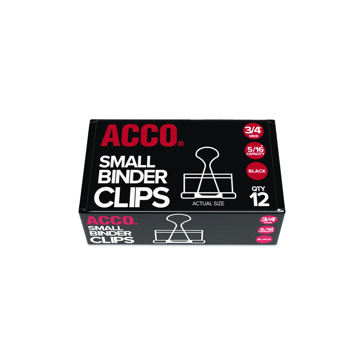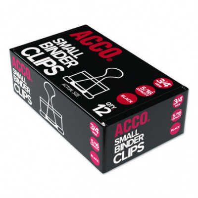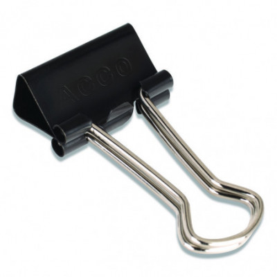 Reusable black binder clip with silver arms securely fastens stacks of paper. Tempered steel provides extra strong hold and clips spring back into shape when removed.
