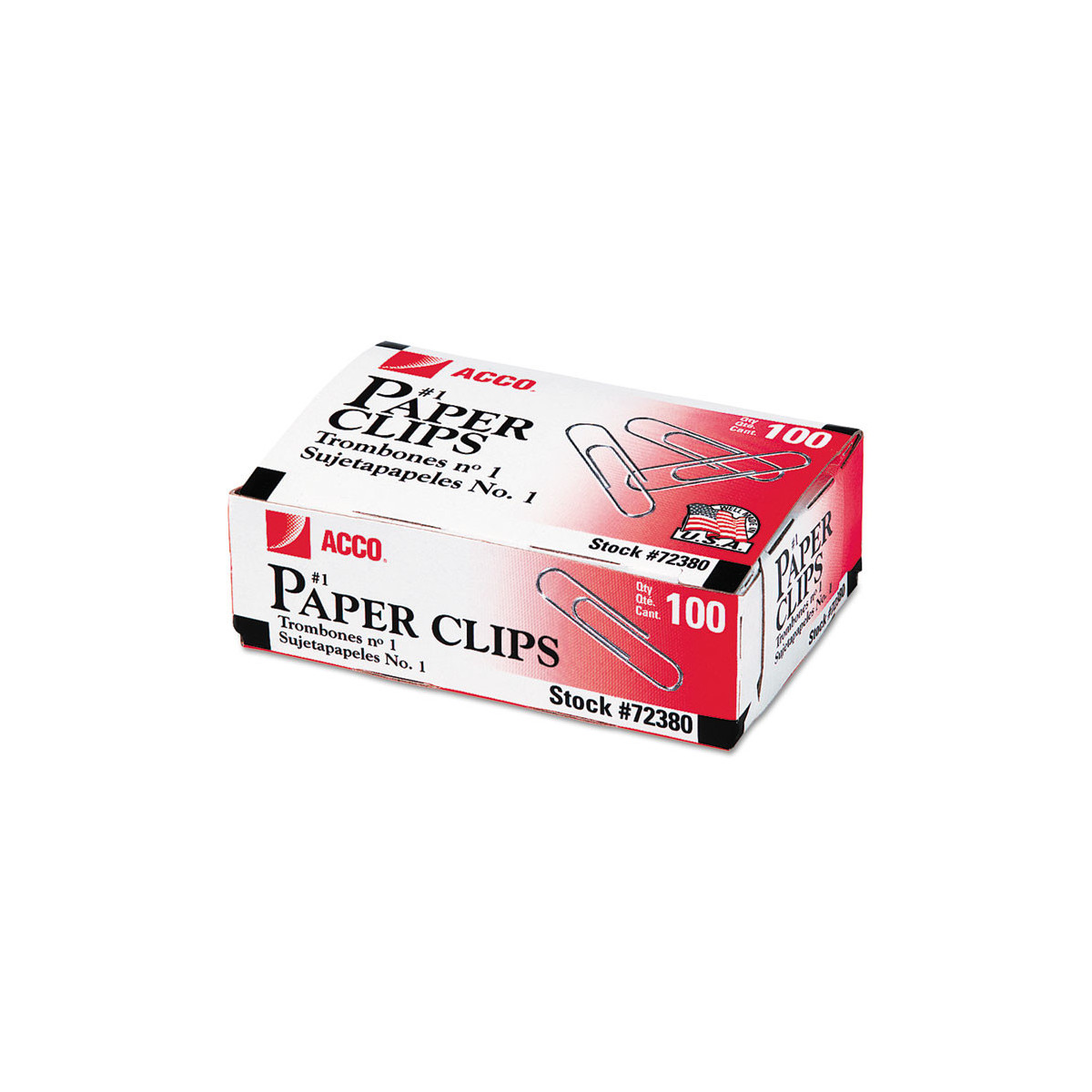 Paper Clips, Number1, Smooth, Silver, 100 Clips/Box, 10 Boxes/Pack