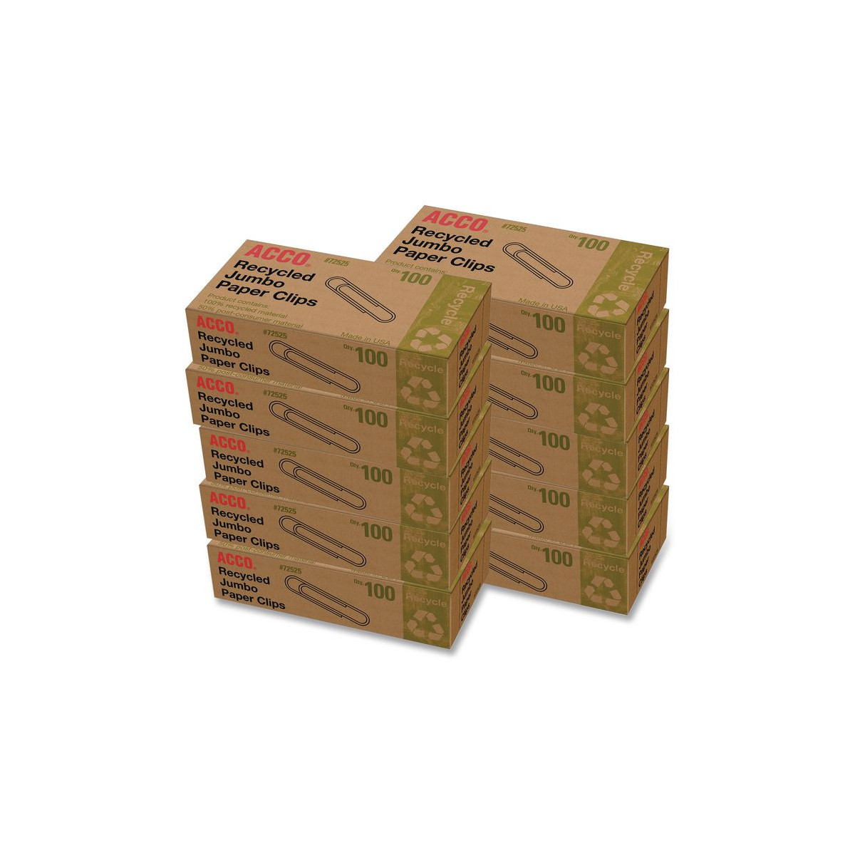 Recycled Paper Clips, Jumbo, Smooth, Silver, 100 Clips/Box, 10 Boxes/Pack