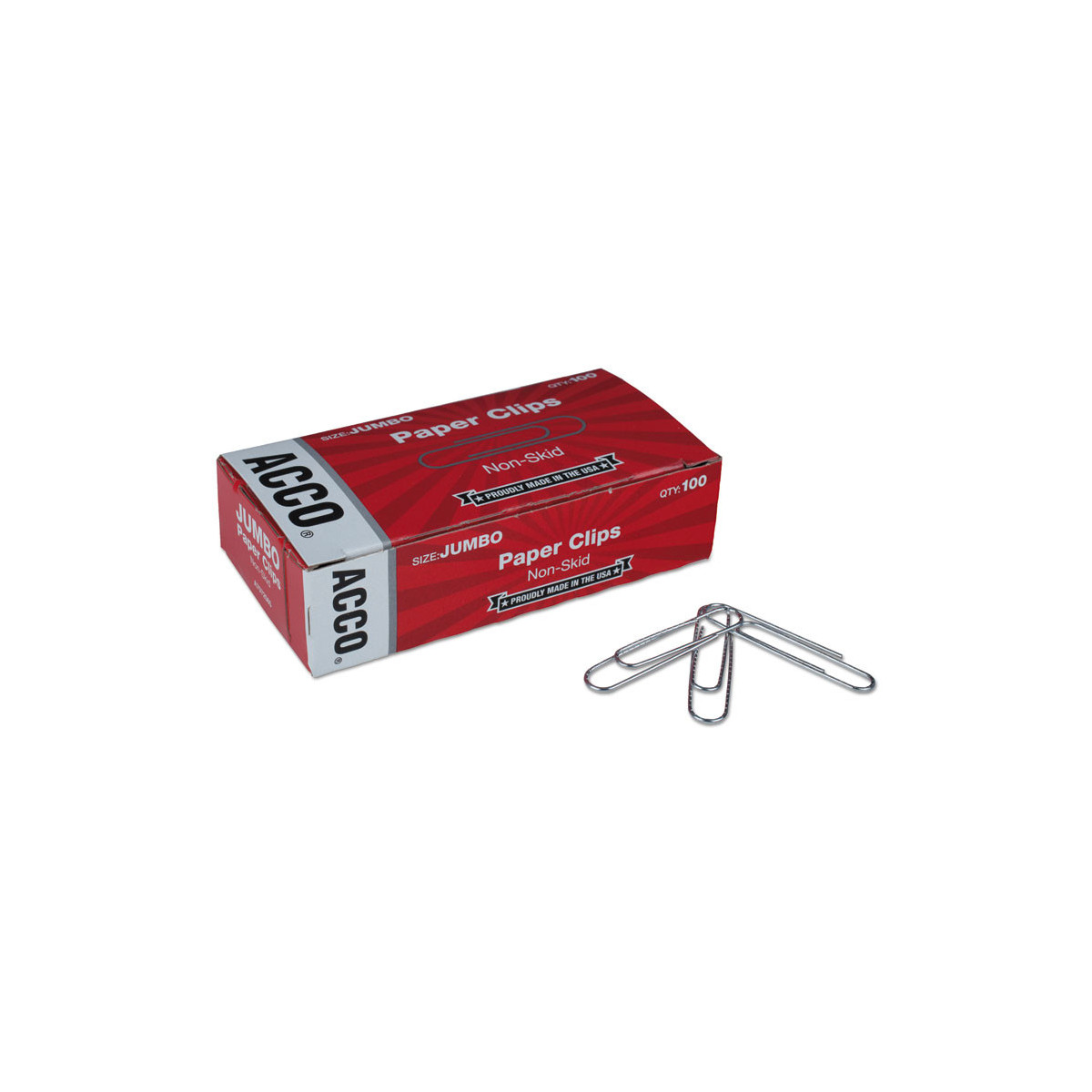 Paper Clips, Jumbo, Nonskid, Silver, 100 Clips/Box, 10 Boxes/Pack
