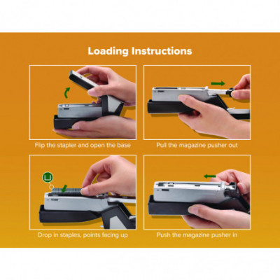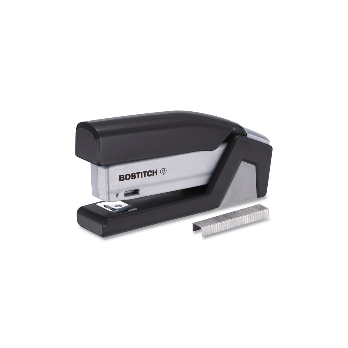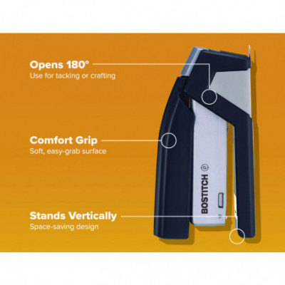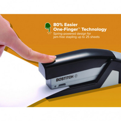 Experience one-finger convenience with our inJoy™ Spring-Powered Stapler. This innovative tool with One-Finger™ Spring-Powered Technology ensures fast, hassle-free stapling that's 80% easier than standard staplers. Enjoy jam-free performance while securely binding up to 25 sheets. Its compact, lightweight design is perfect for on-the-go use. Plus, it boasts an ergonomic curved design, built-in staple puller and storage, and versatile functionality for bulletin board tacking and crafts. With half strip staple capacity, optimal performance is built to last. Crafted from post-consumer recycled plastic, it's a sustainable choice for your office setup.