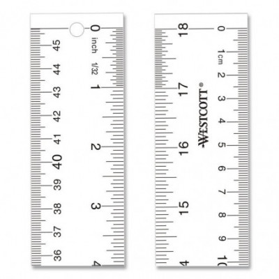 Westcott Drafting and Drawing Tools are some of the finest products of their kind for students and professionals. The commitment to meticulous quality and cutting edge innovation in measurement and art materials has earned an unparalleled reputation. Feature-packed ruler is ideal for home, school, office and shop. Precisely scaled in 1/16" on one side and millimeters on the other. Features raised beveled edges to eliminate smearing and extra margins at the ends for clear starts and stops. Plumb lines at ends aid in drawing or checking right angles. Hang-up hole.