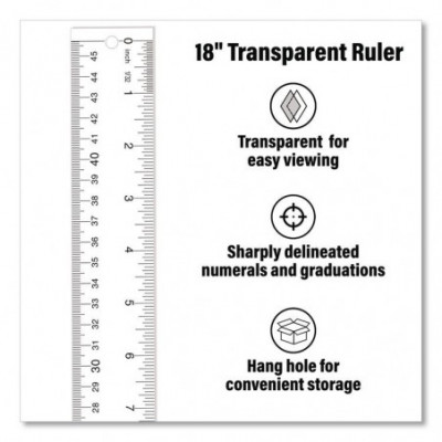 Clear Flexible Acrylic Ruler, Standard/Metric, 18" Long, Clear