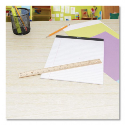 Selected hardwood is finished with multiple coats of lacquer for added durability. Metal edge is ideal for straight-line cutting and for drawing clean, precise lines. Clearly marked and scaled in 1/16" on one edge and millimeters on the other. Three-hole punched for easy-access storage in a binder; convenient hole for hanging at one end.