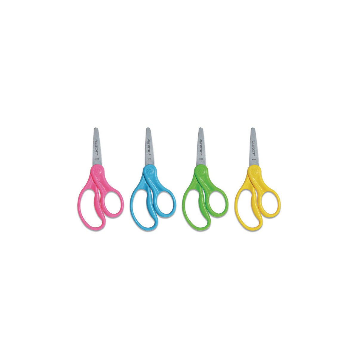 For Kids Scissors, Pointed Tip, 5" Long, 1.75" Cut Length, Straight Handle, Randomly Assorted Handle Color