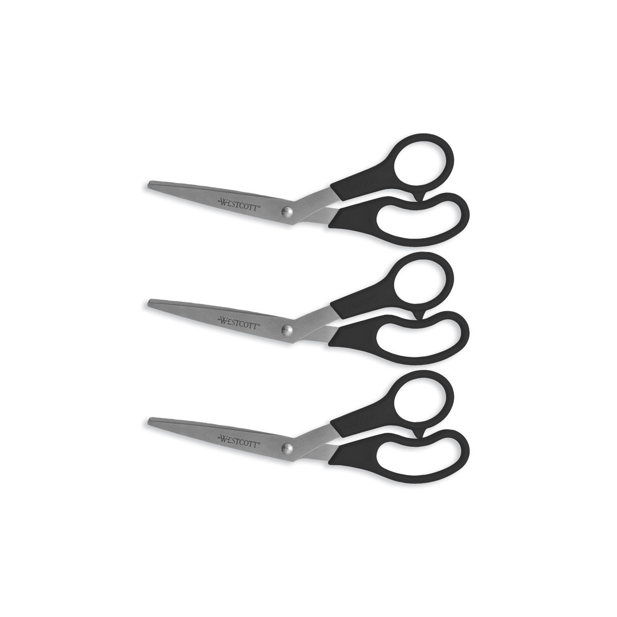 Value Line Stainless Steel Shears Value Pack, 8" Long, 3.5" Cut Length, Crane-Style Black Handle, 3/Pack
