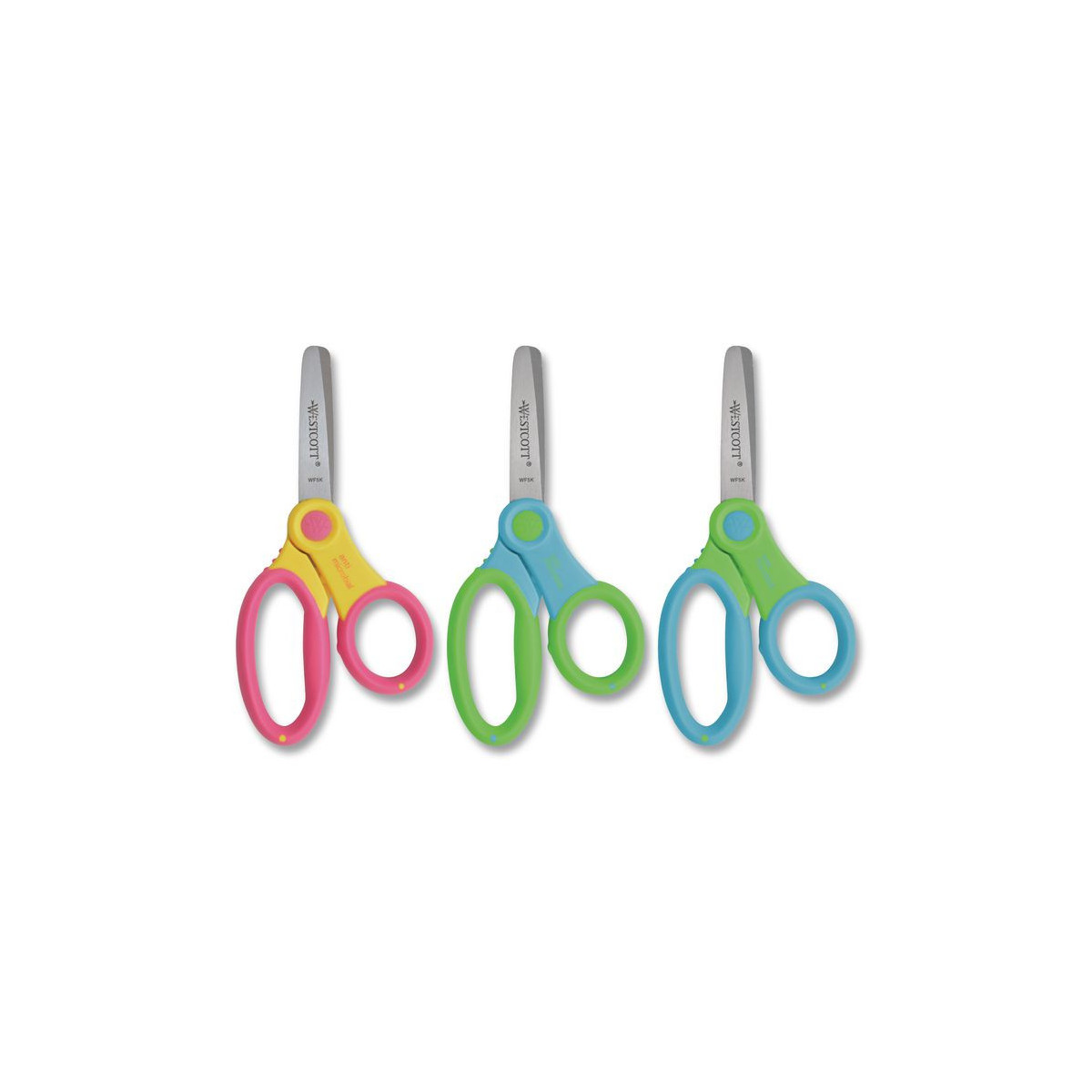Ultra soft handle and finger rest for maximum comfort. Stainless steel safety blades. Perfect for cutting projects, in the classroom or at home. Handles contain an antimicrobial agent to help inhibit the growth of bacterial stains and odors.