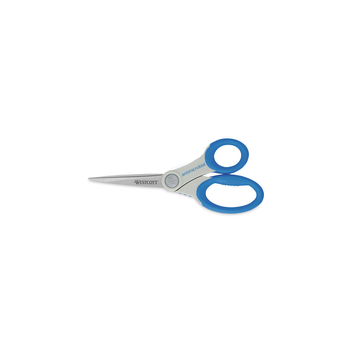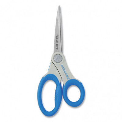 Contoured soft grip handle for maximum comfort. Stainless steel blades. Ideal for shared/common areas such as office, classroom and breakroom. Westcott offers a wide range of anti-microbial protected products. Handles contain an antimicrobial agent to help inhibit the growth of bacterial stains and odors. It's ideal for products that are shared around the home, office or school.