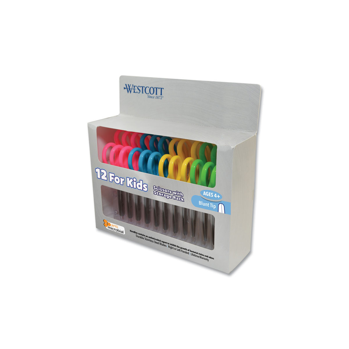 Kids' Scissors with Antimicrobial Protection, Rounded Tip, 5" Long, 2" Cut Length, Straight Assorted Color Handles, 12/Pack
