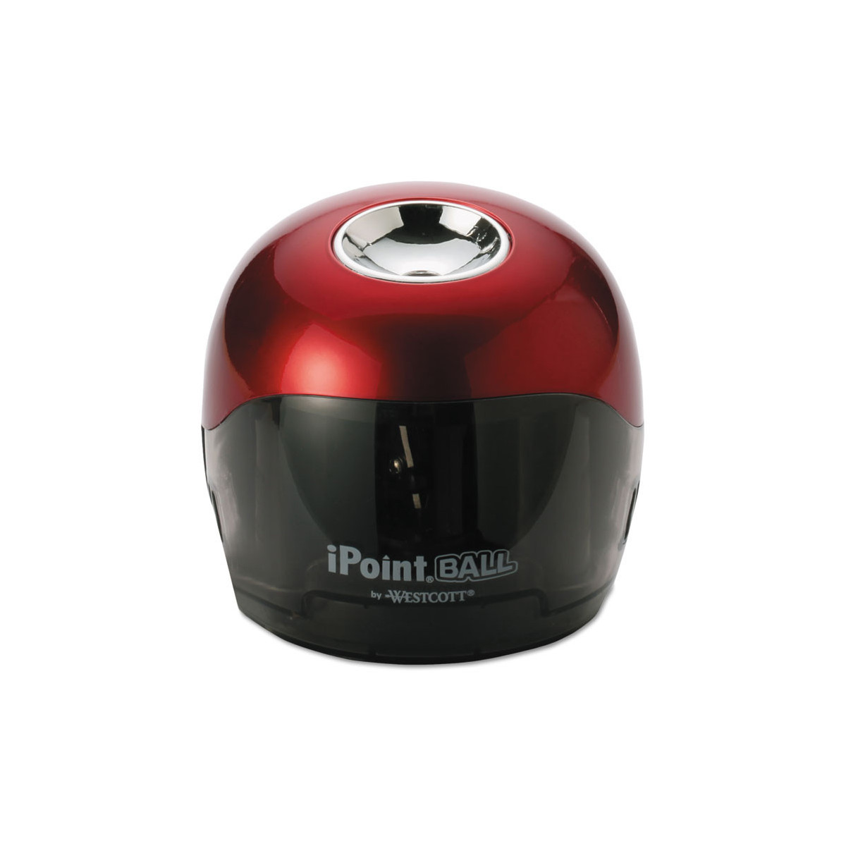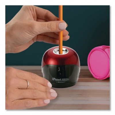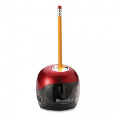 A unique design that delivers a unique performance. Featuring a proprietary 2-blade technology, the iPoint® Ball sharpens pencils two times faster than other sharpeners in its class. Features Sharp Sense technology that allows you to feel when the pencil is at the optimal point. Safety cut-off when the shavings reservoir is removed. Powered by four AA batteries (sold separately).