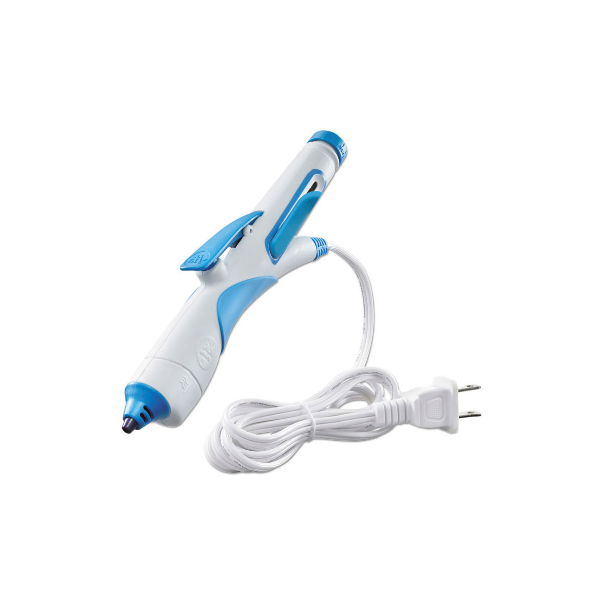 With an easy-to-dispense trigger and ergonomic design, precision accuracy is delivered to every project. Pen style grip for easy use. Non-stick tip for easy clean-up. Nozzle changes from blue to red indicating when the pen is hot and ready for use. Top-mounted finger trigger allows for controlled glue dispensing. Suggested use on plastic, felt, styrofoam, paper and silk. For best results use with the mini glue sticks.