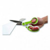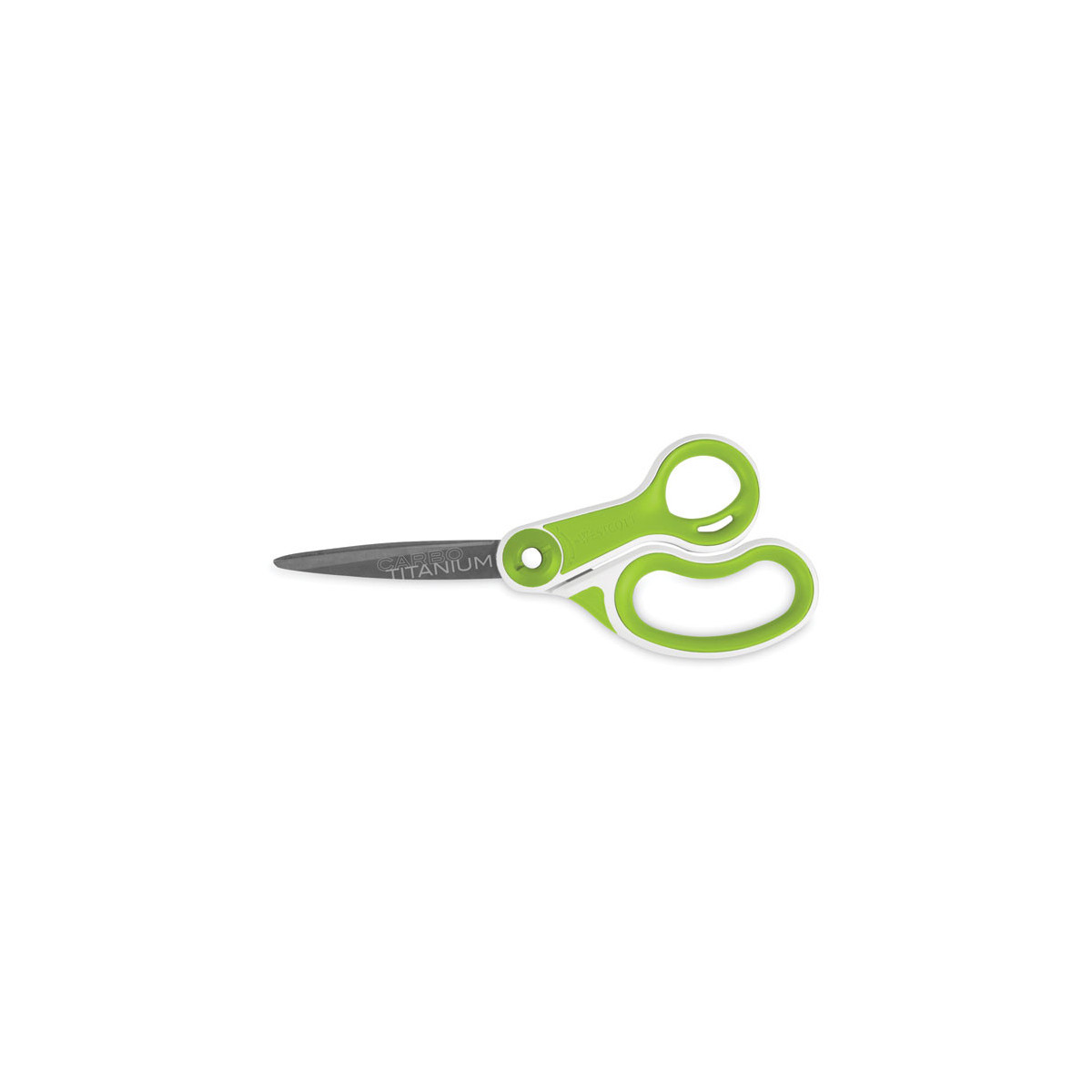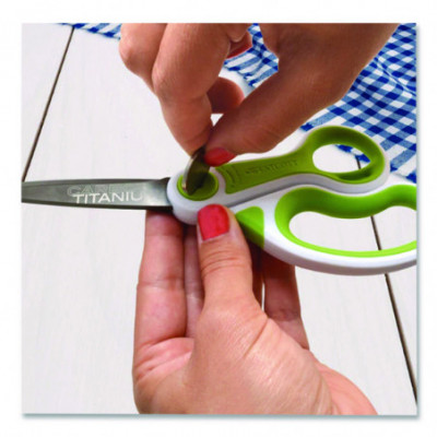 Patent-pending CarboTitanium® blade-bonding technology, one of the hardest titanium-surface treatments available. Industrial-strength blades easily cut through multiple layers of fabric, cardboard, canvas, vinyl magnets and more. Blade surface will not chip, flake or peel. Scissors have a unique ergonomic over mold and high-strength handle.